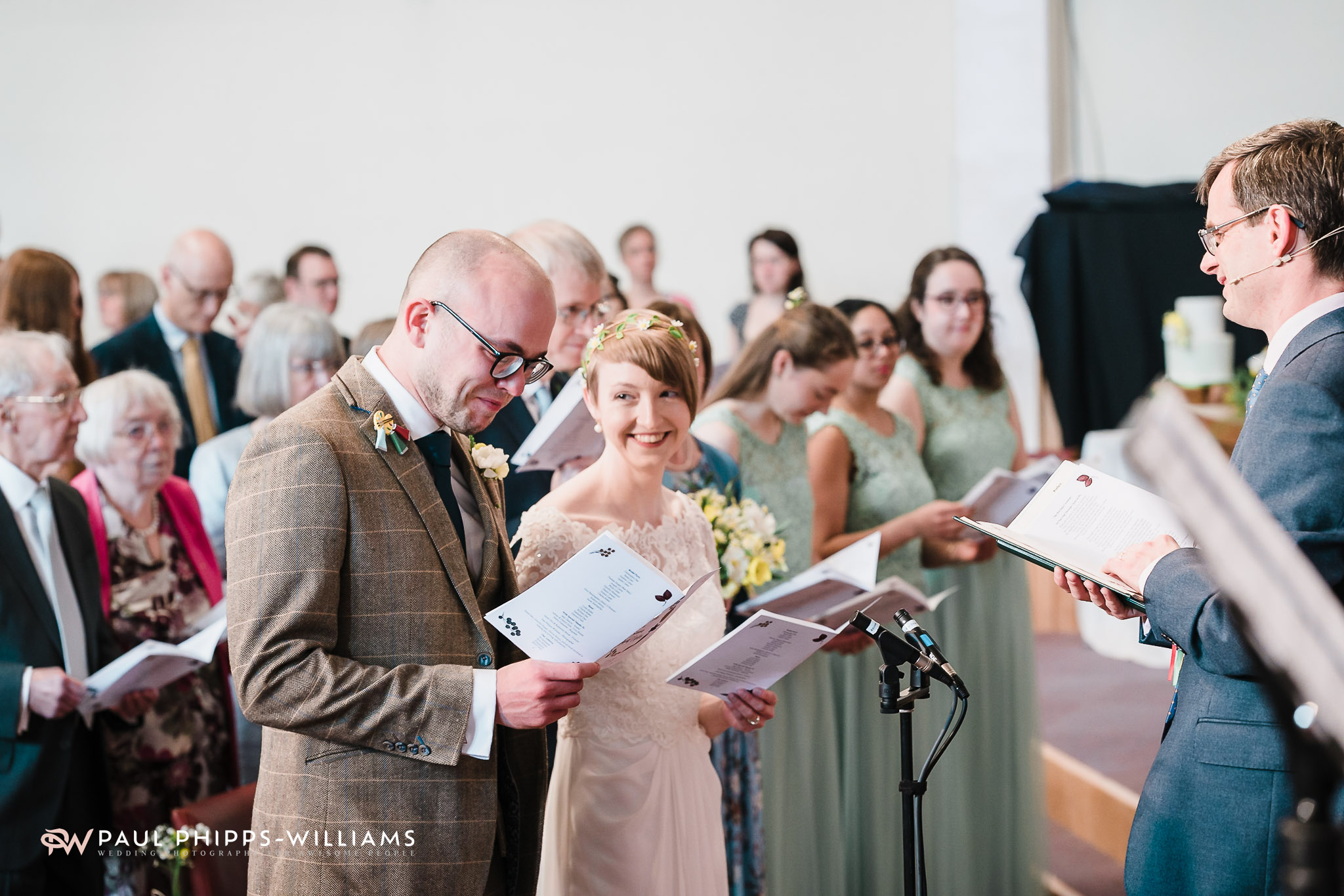 Faith and fellowship were at the heart of Emily and Simeon’s celebration. The communities they’ve built through their churches mean the world to them, and that love was woven into every part of the service. I often joke that I have one major flaw as a wedding photographer: if someone cries, I’m a goner. True to form, when Emily appeared at the church doors in her stunning white dress from Cherished Bridal Wear, Sim’s reaction had me welling up behind the lens.